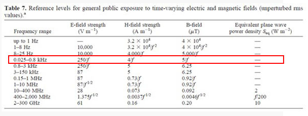 1,頻率為50Hz的電磁場(chǎng)輻射限值