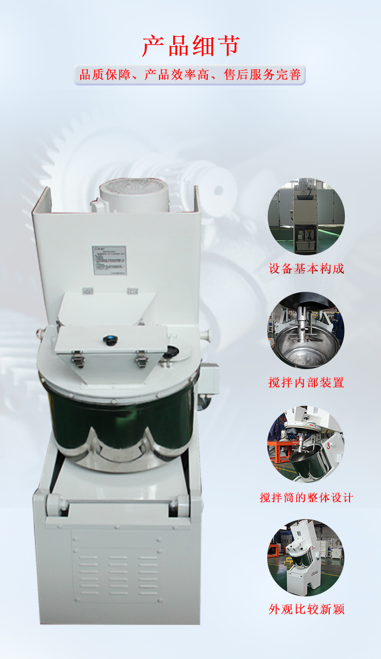 6.混料機(jī)采用全封閉式結(jié)構(gòu),多重密封,運(yùn)行時(shí)幾乎無(wú)粉塵;
